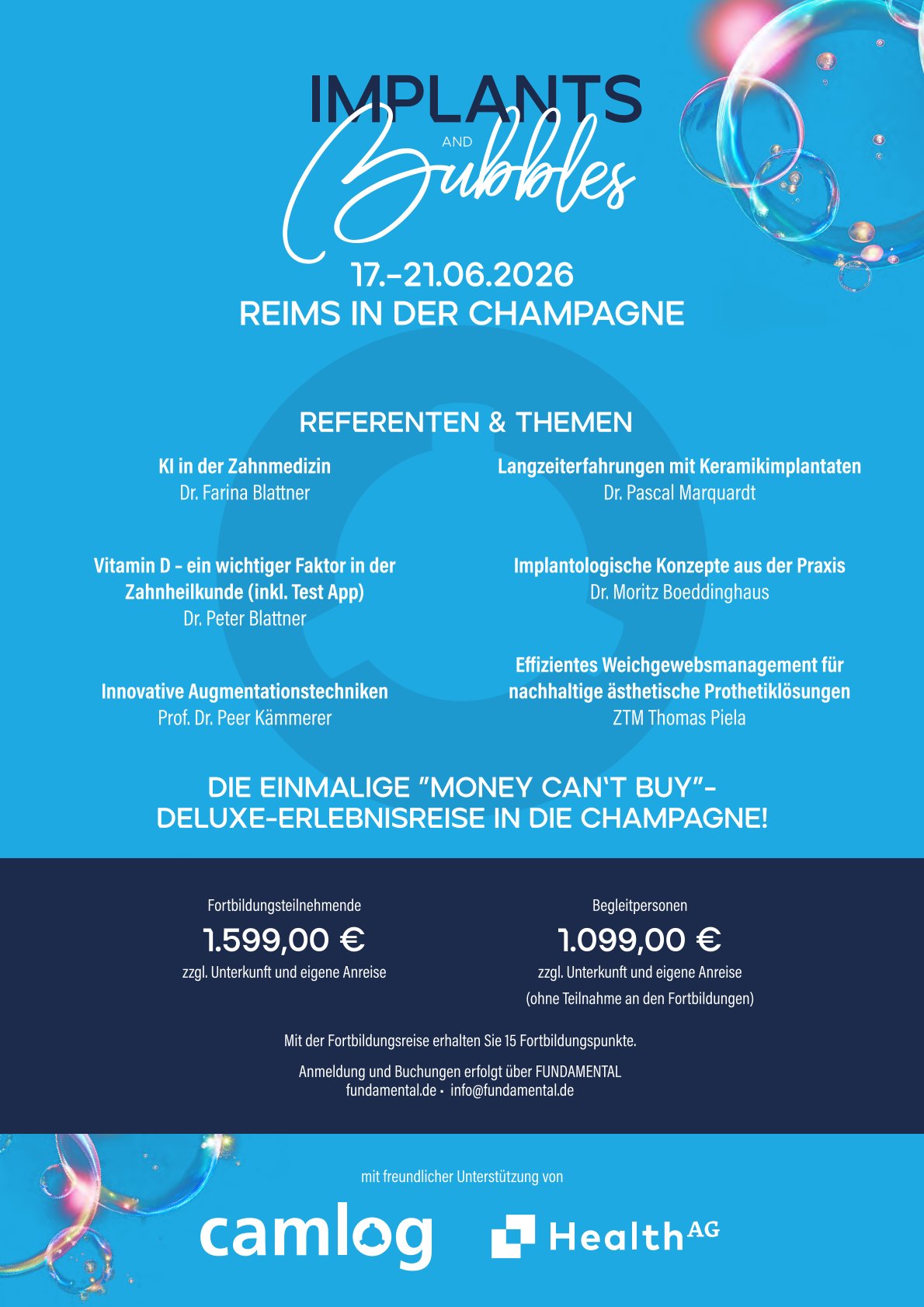 Implantologie auf höchstem fachlichen Niveau trifft auf französische Lebensart, Champagnerkultur und ein außergewöhnliches Netzwerk-Erlebnis.